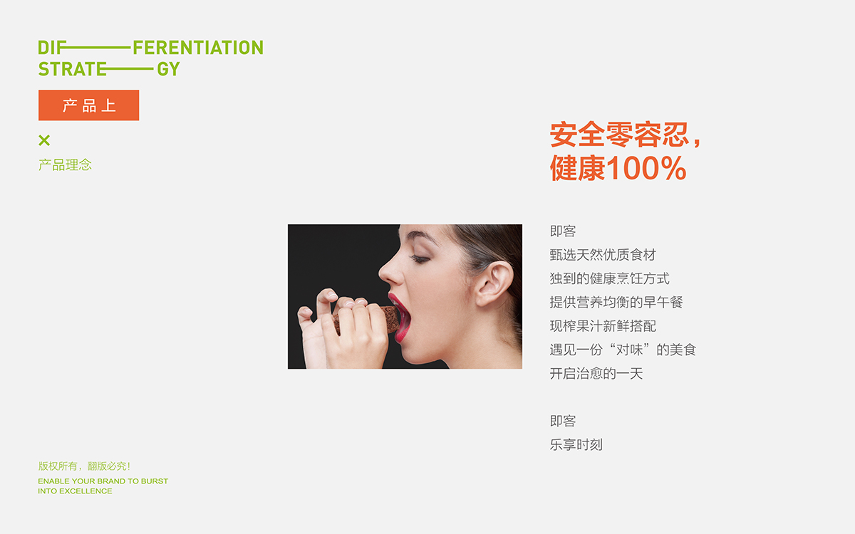 即客,樂(lè)享時(shí)刻。我們定義并通過(guò)視覺(jué)化表現(xiàn)來(lái)詮釋“樂(lè)享”主張。簡(jiǎn)約、流動(dòng)、張力的視覺(jué)符合結(jié)合品牌理念和產(chǎn)品賣點(diǎn)貫穿始終,塑造出一個(gè)年輕并賦予消費(fèi)者健康快樂(lè)的品牌體驗(yàn)。